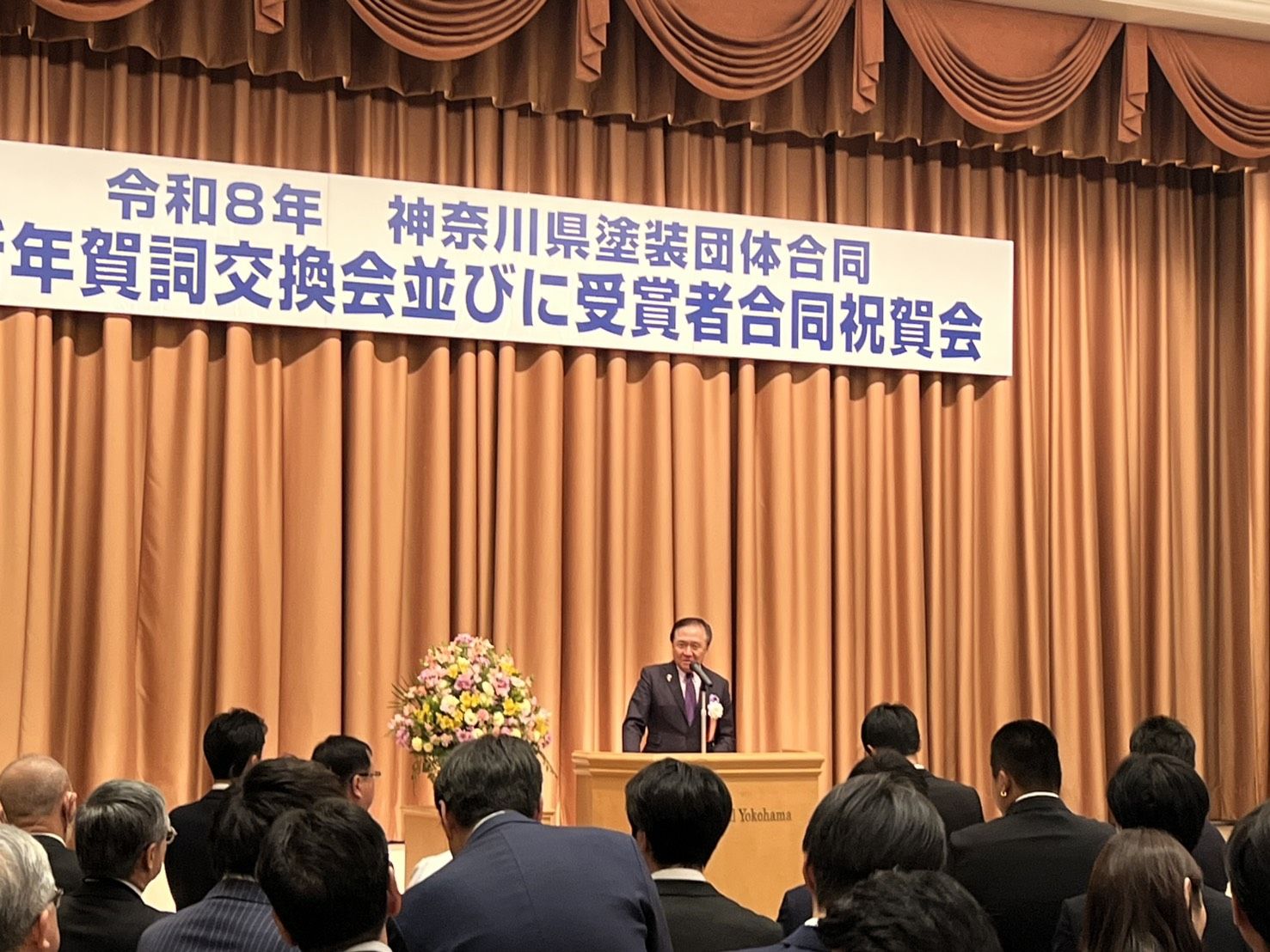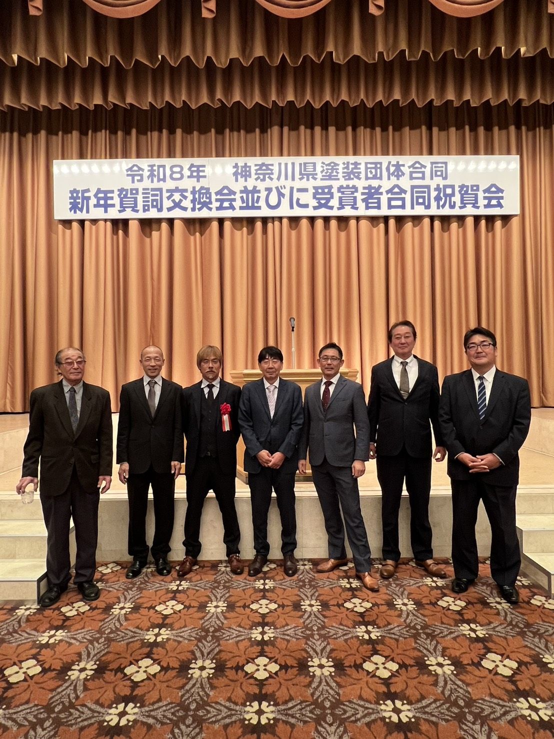神奈川県塗装団体合同賀詞交換会並びに受賞者合同祝賀会に参加してきました。弊組合からは7名参加させていただきました。また、弊組合のエイアンドゼット技建の伊豆さんが「相模原市功労者賞」を受賞されました。誠におめでとうございます。